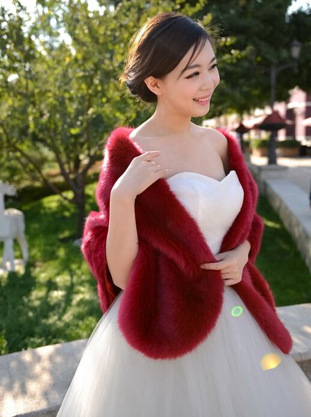 Red Black White Faux Fox Fur Boleros Bridal Wraps Wedding Dress