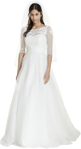 David S Bridal 3 4 Sleeve Wedding Dress With Lace And Tulle Skirt