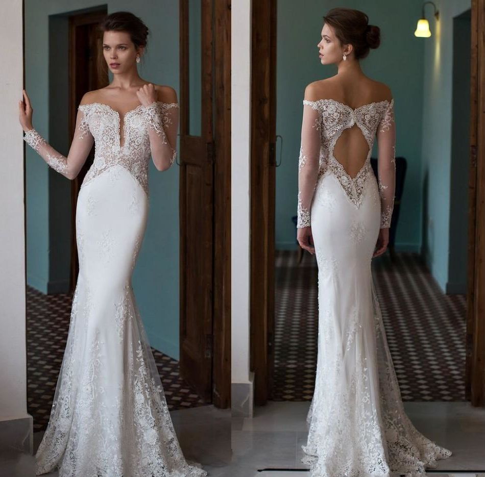 2019 Mermaid Wedding Dresses Off The Shoulder Deep V Neck Illusion