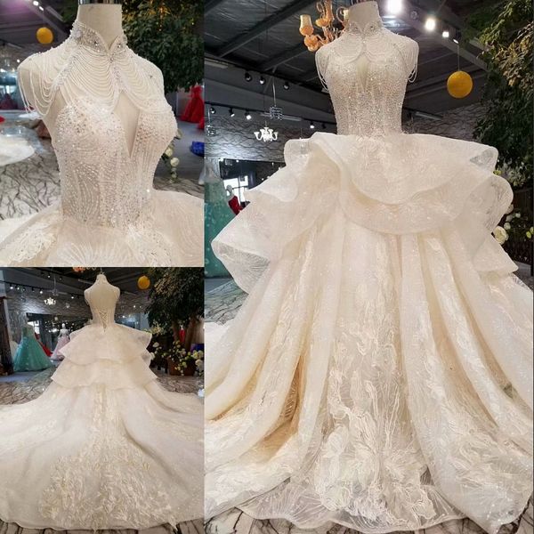 Elegant Princess Wedding Gowns High Neck Beading Crystal Corset