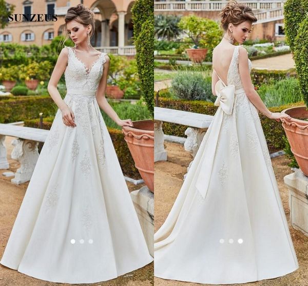 Discount A Line Appliques Satin Wedding Gowns Long Bridal Dress