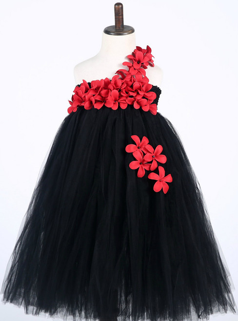 Black And Red Flower Girl Dress Glitter Tulle Dress Wedding Dress