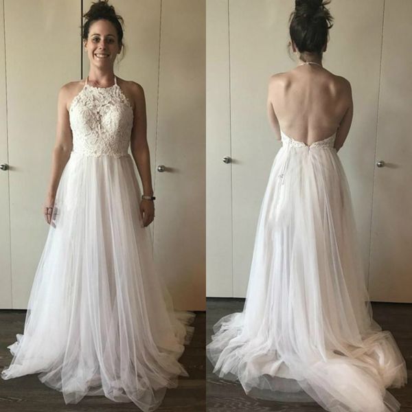 Sleeveless A Line Low Back Halter Top Sexy Beach Wedding