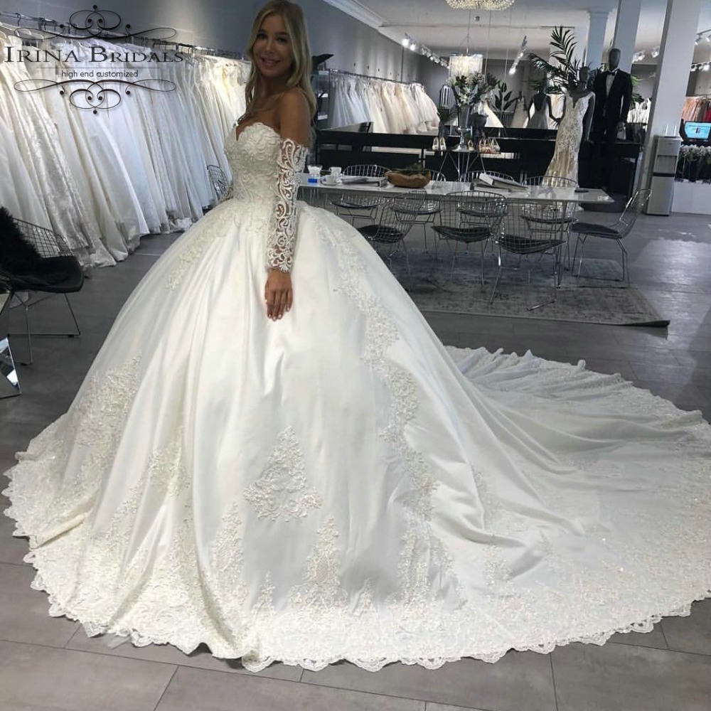 Princess Ball Gown Wedding Dresses Long Sleeve Bridal Gowns Lace