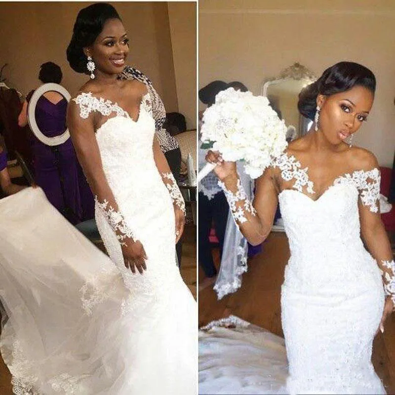 African Mermaid Wedding Dresses Long Sleeve 2019 Black Women Robe