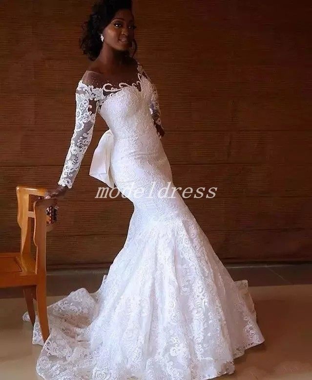 Flash Deal Modest African Mermaid Lace Wedding Dresses 2019