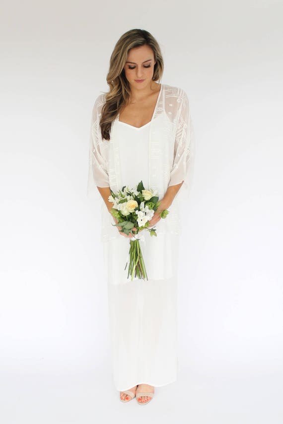 Silk Kimono Boho Wedding Jacket Cover Up Ivory Modern Etsy