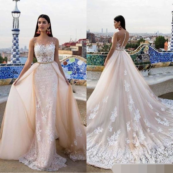 Beautiful Long Sleeve A Line Two Pieces Beach Country Bridal Gown