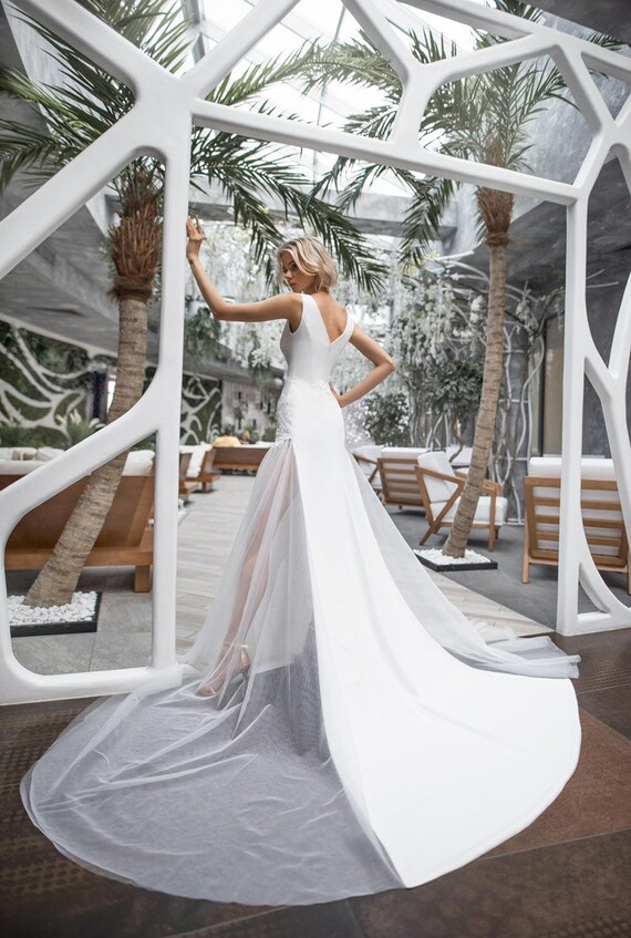 Modern Wedding Dress Simplee Satin Crepe Modern Wedding Dress Etsy
