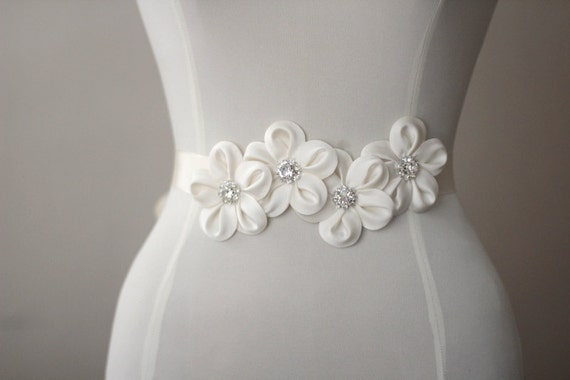 Ivory Taffeta Flowers Wedding Dress Belt Sash Etsy