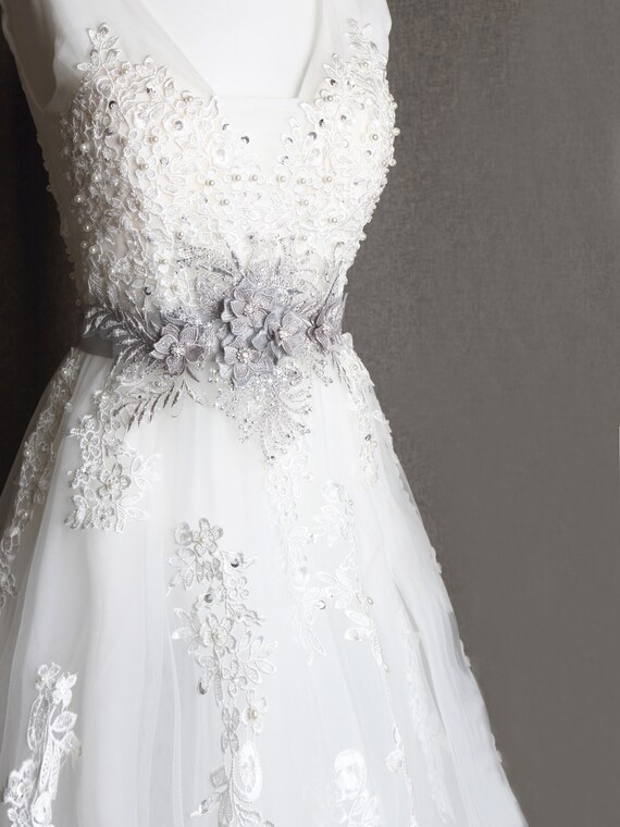 Gray Wedding Sash Gray Lace Belt Wedding Dress Sash Bridal Etsy