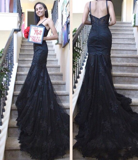 Black Lace Mermaid Dress Black Dress Custom Made Black Etsy