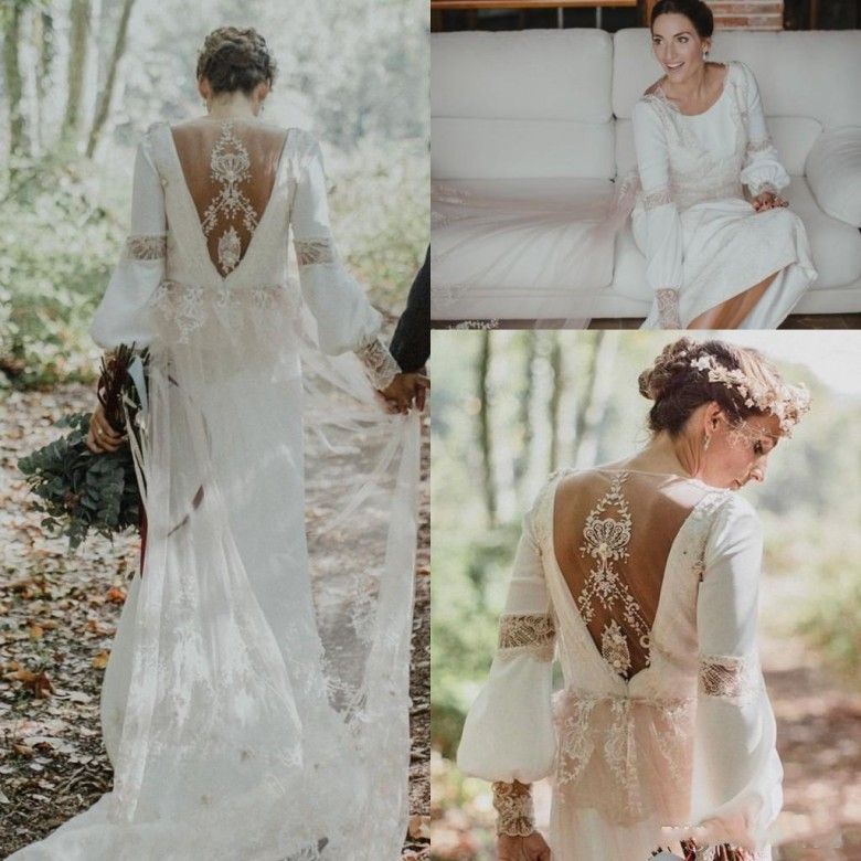 Vintage Country Wedding Dresses 2018 Lace Floral Back Bohemian