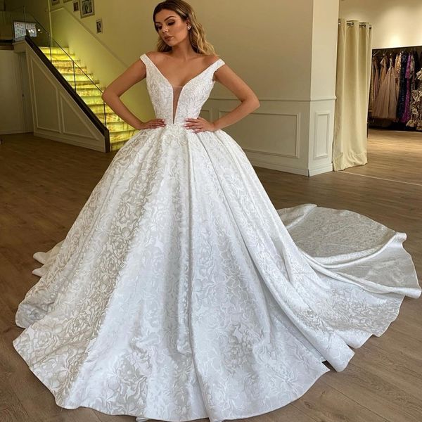 Discount Gorgeous Ball Gown Wedding Dresses With Deep V Neck Long