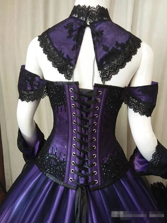 Deep Purple Gothic Wedding Dresses Handmade Victorian Steampunk