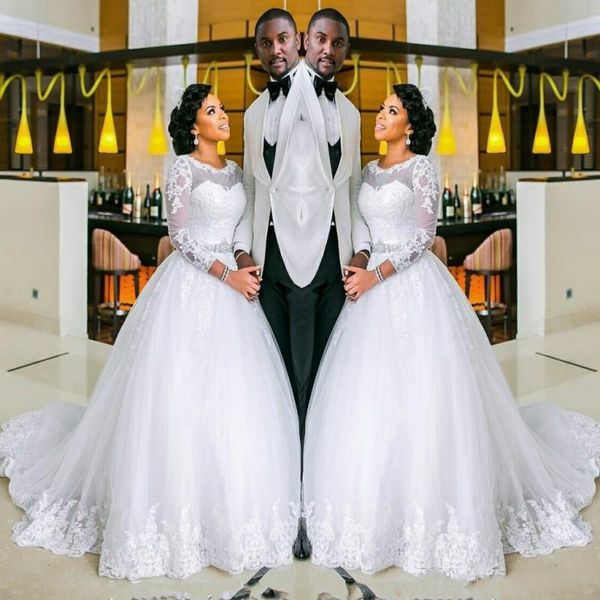 Discount 2020 New African Wedding Dresses Illusion Lace Appliques