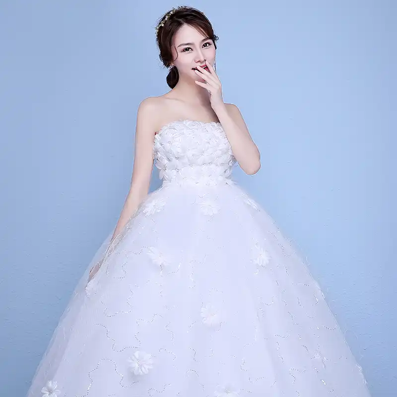 3 Colors Pink Red White Wedding Dress Women Luxury Lace Strapless