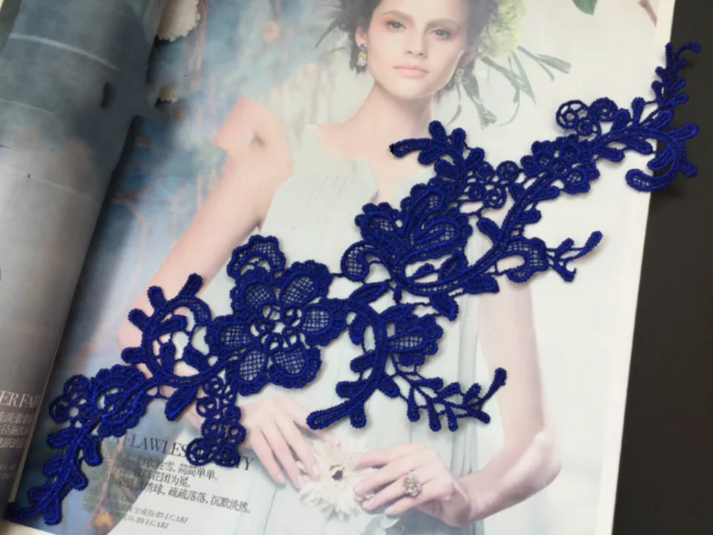 34cmx11cm 5pairs Fabic Embroidery Motif Royal Blue Lace Flower