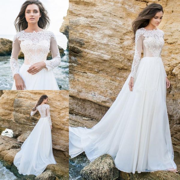 Discount New Hot Summer Beach A Line Wedding Dresses Jewel Neck