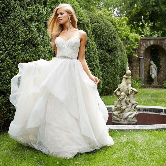 Tiered Tulle A Line Strapless Wedding Dress With Belt Sassymyprom