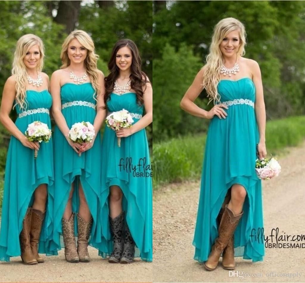 Cheap Country Bridesmaid Dresses 2019 Teal Turquoise Chiffon