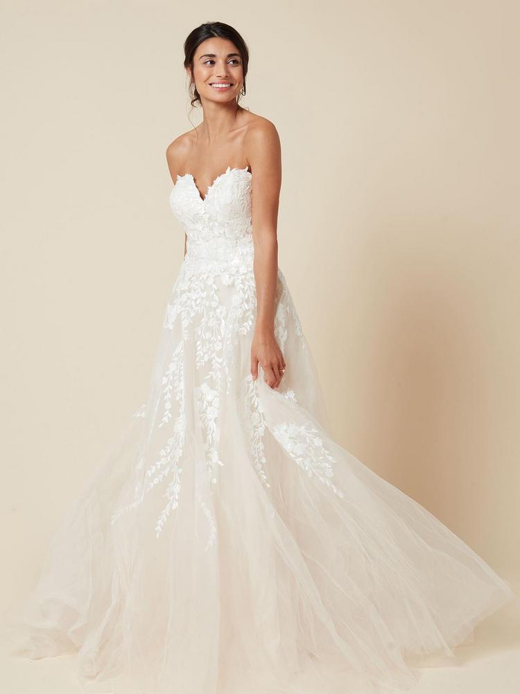 Strapless Sweetheart A Line Lace And Tulle Wedding Dress With