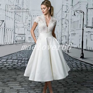Vintage Short Wedding Dress Lace Bride Dresses Tea Length Wedding