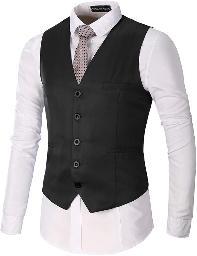 Orfilaly Mens Formal Business Vest Casual V Neck Sleeveless Slim