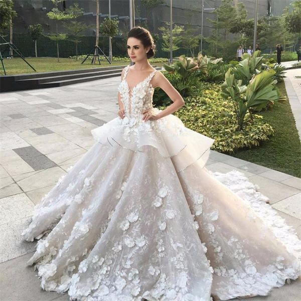 Luxury Ball Gown Wedding Dresses With 3d Flower Sheer Back