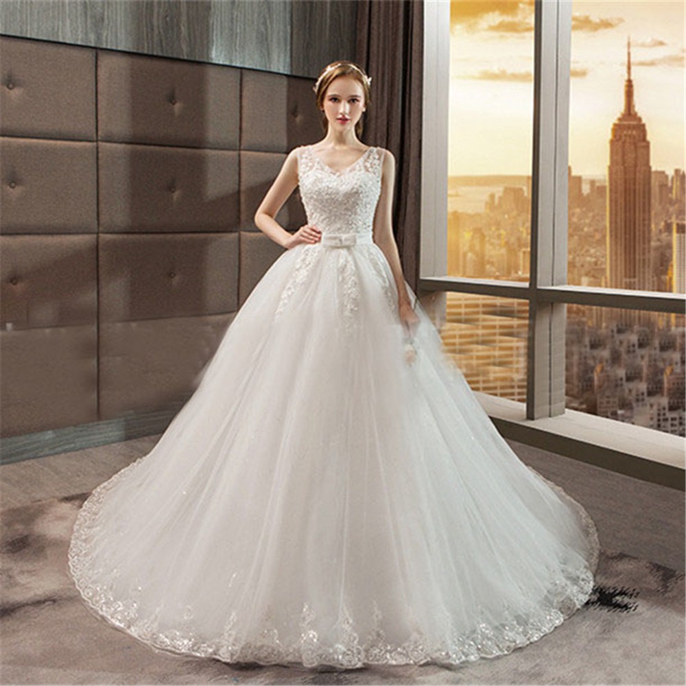 Trailing Simple Large Size Lace Wedding Dress Formal Dress