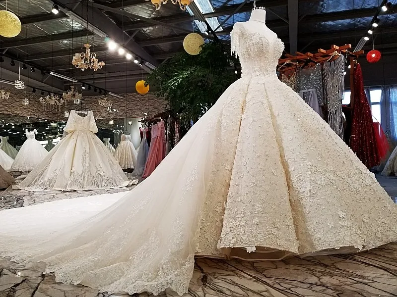 Ls12470 2018 Luxury Wedding Dress O Neck Ball Gown Lace Up Ivory