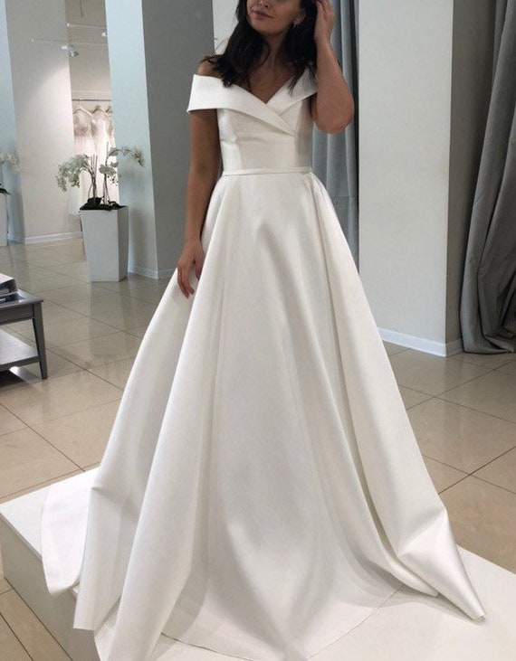 Classic Satin Simple Wedding Dress Plus Size Wedding Dress Etsy
