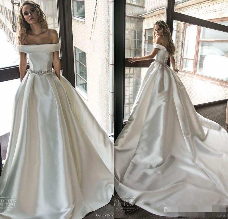 Discount 2019 Simple Elegant A Line Satin Wedding Dresses With