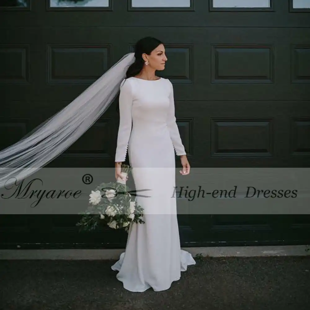 Mryarce Simple Elegant Long Sleeves Open Back Wedding Dress