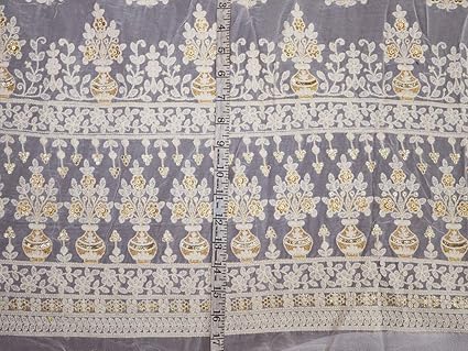 Amazon Com Flower Pot Embroidered Floral Design Georgette
