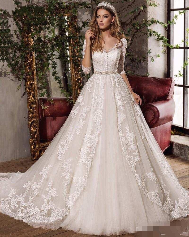 2018 New Design Sexy V Neck Elegant Bow Princess Wedding Dresses