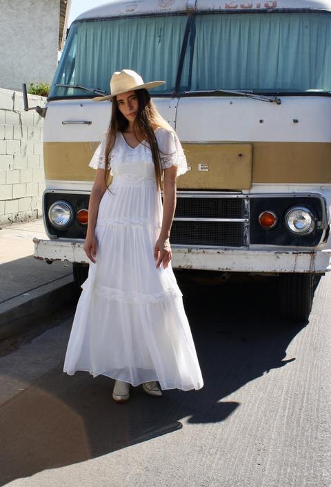 Sunday Gauze Dress Vintage Sun Boho Hippie 70s High Waist Maxi