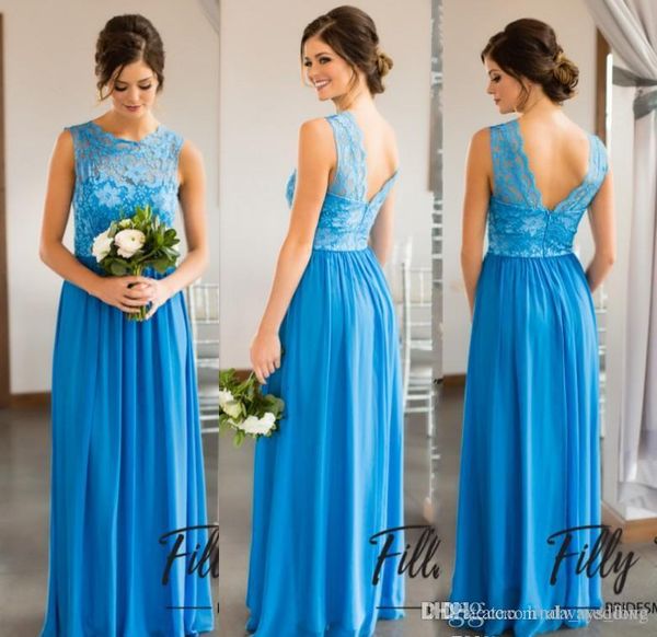 2019 Ocean Blue Chiffon Long Bridesmaid Dress For Summer A Line
