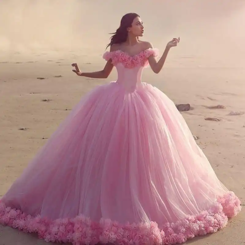 2018 Pink Quinceanera Gowns Princess Cinderella Formal Long Ball