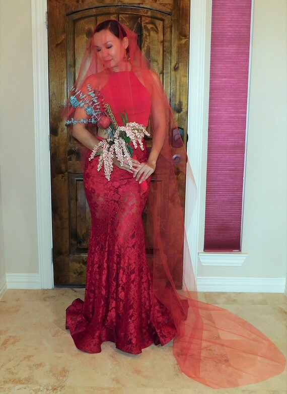 Red Fingertip Bridal Veil Wedding Veil 3 8 Red Satin Etsy