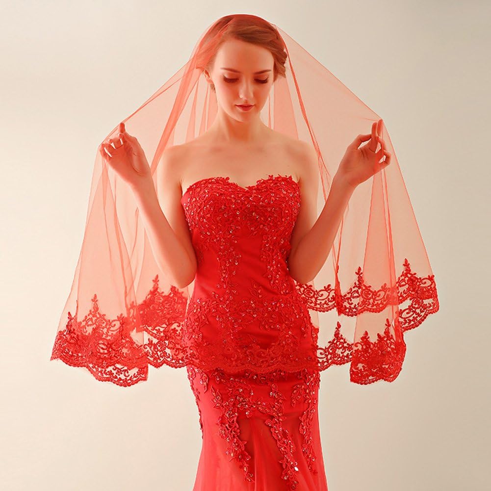 Aurora Bridal Women S Short Elegant Red Wedding Veils With Lacy