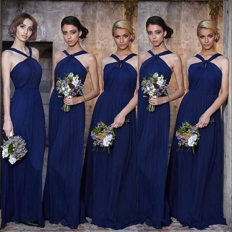 Modern Chiffon Royal Blue Bridesmaid Dresses Long 2017 Sexy Halter