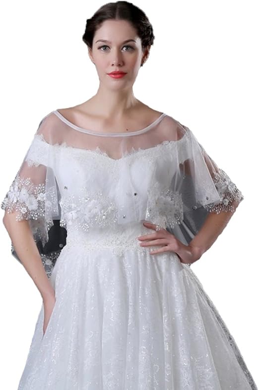 Bridal Embroidered Lace Appliques Shrug Wedding Shawl Wrap Stole
