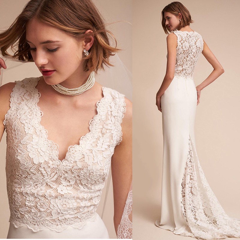Adln Cheap Lace Wedding Dress O Neck Tulle Boho Beach Bridal Gown
