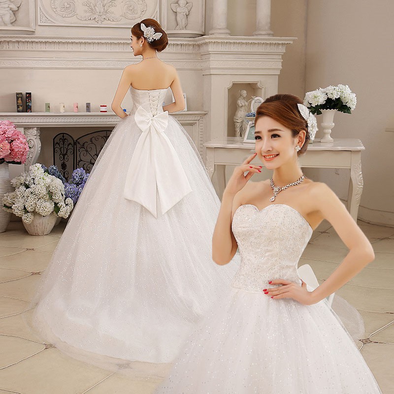 Ready Stock Wedding Dress Bride New Cute Bow Slim Long Tail