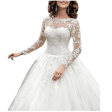 Ainisha Women S Elegant Lace Applique Beading Wedding Gowns Bridal