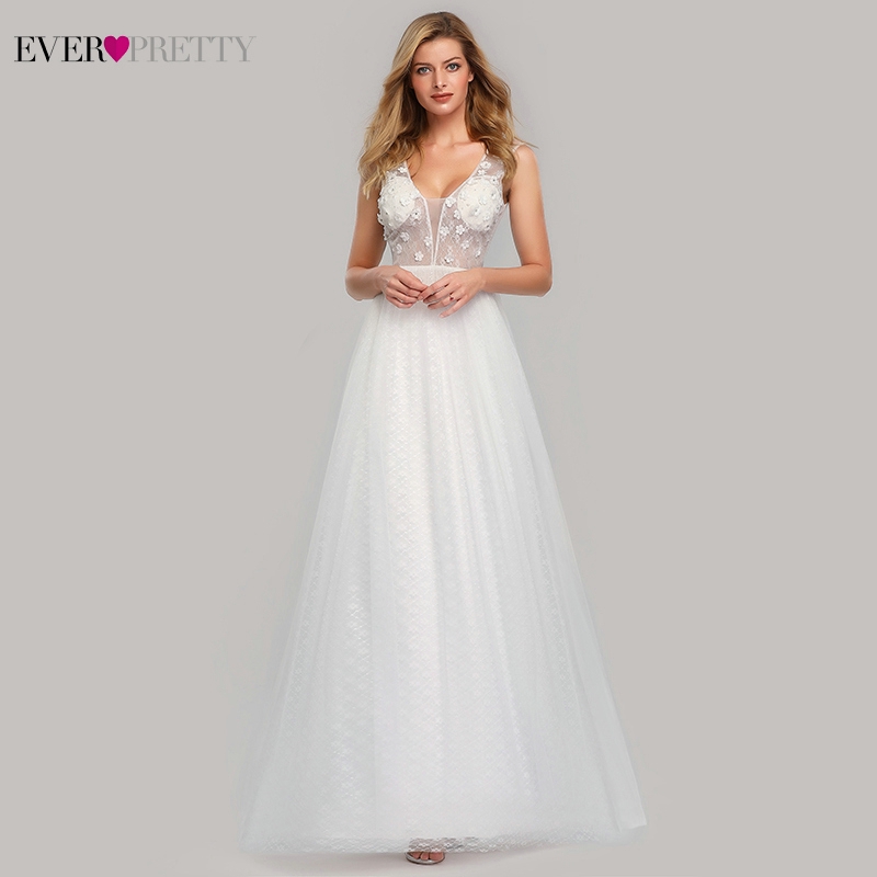Ever Pretty White Wedding Dresses Deep V Neck Appliques Sexy Lace