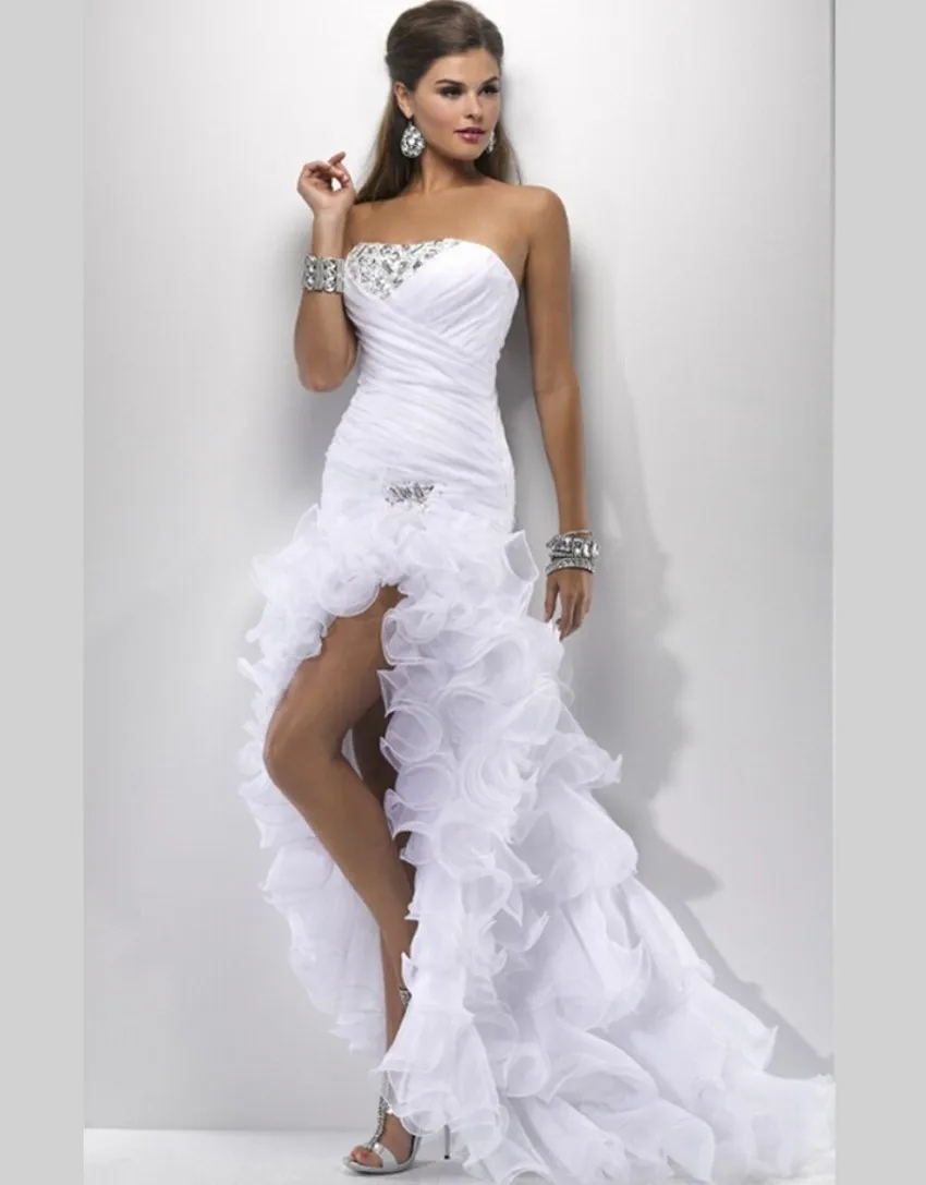 Elegant White Strapless Short Front Long Back Modest Prom Dresses