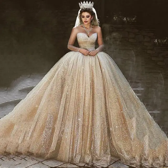 Sparkly Bling Bling Champagne Wedding Dresses 2019 A Line
