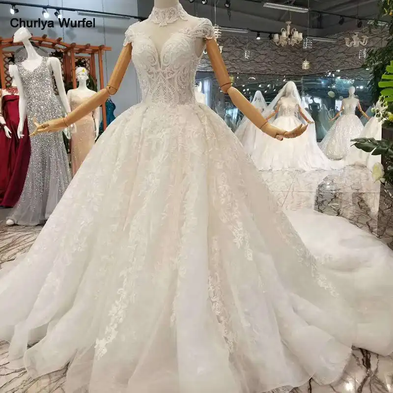 Lss068 Elegant Princess Beauty Wedding Dress High Neck Cap Sleeves